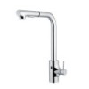 Der elektronische Küchenmixer der Serie I55 von Idral (Modell I55D0-00000) ist auf Komfort und Effizienz ausgelegt. Er ist mit einer progressiven Kartusche und einem manuellen Bypass ausgestattet und wird von einer 6-V-Lithiumbatterie CRP2 betrieben. Das Gehäuse des Mischers besteht aus verchromtem Zamak, während die Teile, die mit Wasser in Berührung kommen, aus Messing gefertigt sind, um Langlebigkeit und Widerstandsfähigkeit zu gewährleisten. Der Infrarotsensor ermöglicht die automatische Aktivierung des Durchflusses, mit ON/OFF-Modus und einer Durchflussmenge von 6 l/min dank des Begrenzers. Bei leeren Batterien ermöglicht der manuelle Bypass das Öffnen und Schließen der Armatur, wobei die Funktionalität der progressiven Kartusche erhalten bleibt. Die herausziehbare Handbrause mit zwei Düsen und der schwenkbare Auslauf bieten zusätzlichen Komfort im täglichen Gebrauch. Das System umfasst Anschlussleitungen aus Edelstahl mit Rückschlagventilen für zusätzliche Sicherheit und Komfort. Darüber hinaus aktiviert der Infrarotsensor die Selbstabgabe alle 24 Stunden nach der letzten Benutzung und die automatische Abschaltung nach 60 Sekunden Dauerabgabe. Eine LED-Anzeige signalisiert, wenn die Batterie schwach ist, und blockiert den Wasserhahn, bis die Batterie gewechselt wird.