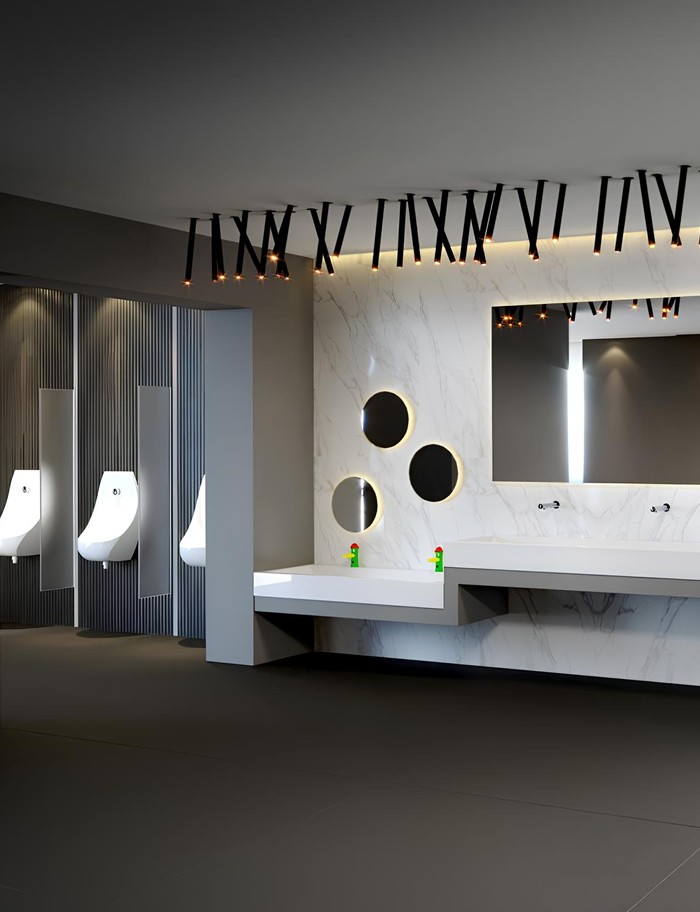 Un aspetto fondamentale è quello del risparmio idrico. I bagni dei grandi spazi devono usare il giusto quantitativo d’acqua per l’attività che devono eseguire: non una goccia in più.